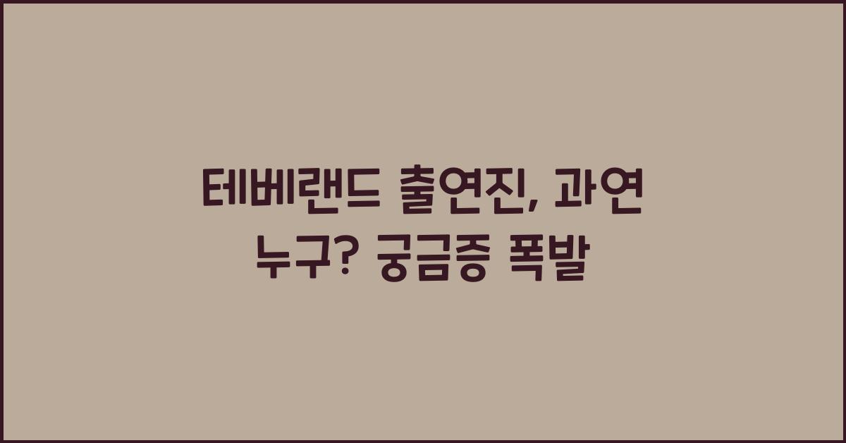 테베랜드 출연진, 그 신비로운 세계로의 초대최근 방송된 테베랜드는 관객들에게 놀라운 기대감을 안겼습니다. 테베랜드 출연진은 매번 누가 등장할지에 대한 궁금증을 불러일으키며, 새로운 얼굴들이 더해질 때마다 시청자들의 기대치가 한껏 상승하죠. 그래서 이번에는 테베랜드 출연진에 대해 심층적으로 알아보겠습니다. 이곳에 어떤 캐릭터들이 있기에 이렇게 큰 관심을 받고 있을까요?테베랜드 출연진 더 알아보기매력적인 캐릭터들테베랜드 출연진은 많고 다양한 캐릭터들로 이루어져 있습니다. 어떤 이는 현실의 대중문화 아이콘을 모티브로 하고, 다른 이는 순수 창작된 캐릭터들입니다. 팬들은 이들이 만들어내는 다양한 상황과 유머에 많은 웃음을 참지 못하죠. 각 캐릭터마다 개성이 뚜렷해 사랑받고 있는 이유입니다.전국민의 사랑을 받는 ..