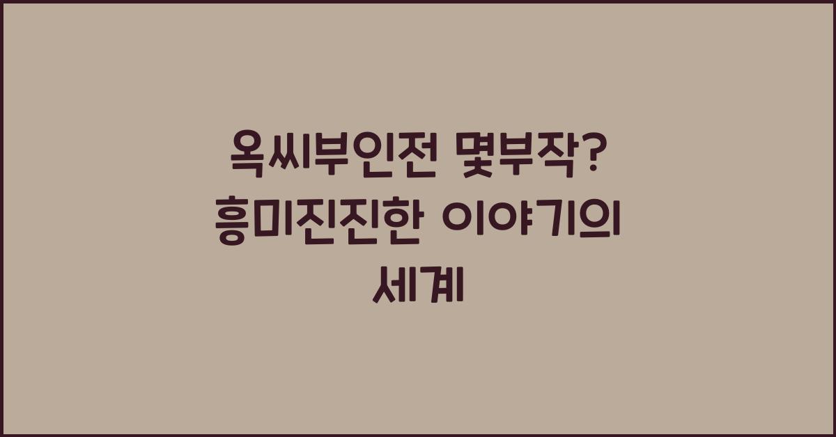 옥씨부인전: 그 매력적인 세계에 발을 들여보자옥씨부인전 몇부작인지 궁금하신가요? 옥씨부인전은 한국 고전소설 중 하나로, 그 내용이 너무나 매력적이어서 많은 독자들에게 사랑받고 있습니다. 특히, 이 이야기의 복잡한 캐릭터와 감정의 교차는 독자가 읽는 내내 흥미를 잃지 않게 만들어 줍니다. 사실, 옥씨부인전의 몇부작인지는 그만큼 많은 이야기를 품고 있다는 증거일지도 모릅니다.옥씨부인전 몇부작 더 알아보기이 작품은 사랑, 배신, 그리고 품위 있는 삶을 주제로 다루고 있어, 독자들에게 깊은 감동을 선사합니다. 여기서 우리는 주인공인 옥씨부인과 주변 인물들이 어떻게 사건에 얽히고 설키며 성장하는지를 지켜볼 수 있습니다. 옥씨부인전 몇부작이냐고 묻는다면, 단순히 그 이야기를 몇 개의 파트나 장으로 나눌 수 없는 복..