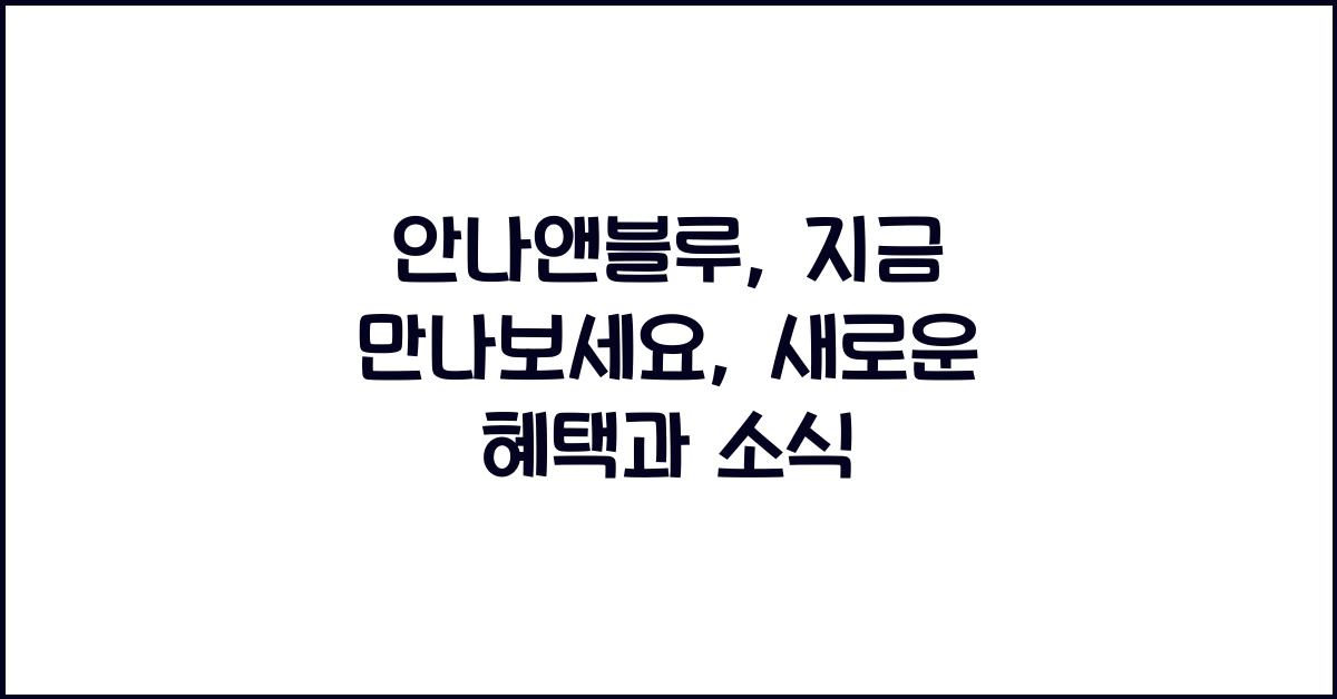 안나앤블루: 새로운 시작안나앤블루, 이 이름을 들어본 적 있으신가요? 최근 많은 분들이 안나앤블루의 혜택과 소식에 대한 관심을 보이고 있습니다. 이 브랜드는 단순한 뷰티 제품을 넘어, 고객들에게 새로운 경험을 제공하기 위해 끊임없이 변화하고 있습니다. 무엇보다도, 최근에는 다양한 프로모션과 이벤트를 통해 고객들과의 소통을 더욱 강화하고 있죠. 그럼 안나앤블루의 새로운 혜택이 무엇인지 자세히 살펴볼까요?안나앤블루 더 알아보기안나앤블루는 그동안 많은 사람들에게 사랑받아 온 브랜드입니다. 특별한 날, 소중한 사람을 위한 선물, 일상에서의 작은 사치까지 여러 상황에서 사용될 수 있는 제품들이 많습니다. 이러한 안나앤블루의 제품들은 품질과 디자인 모두 뛰어나며, 고객의 눈과 마음을 사로잡고 있습니다. 그런데 요즘..