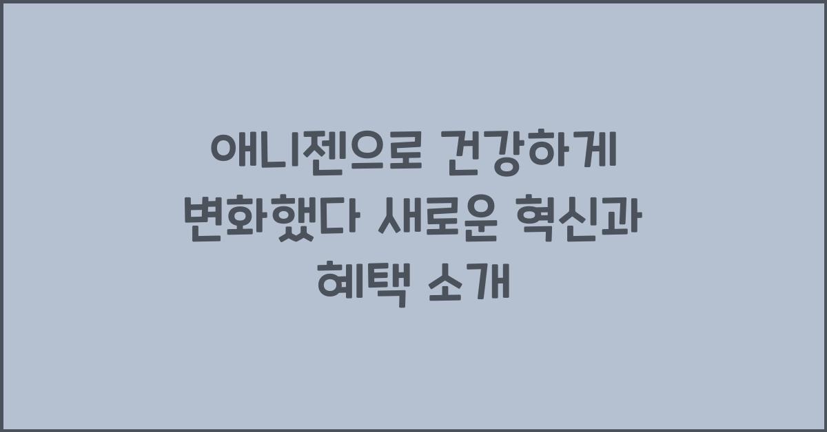 애니젠으로 건강하게 변화했다 새로운 혁신과 혜택 소개