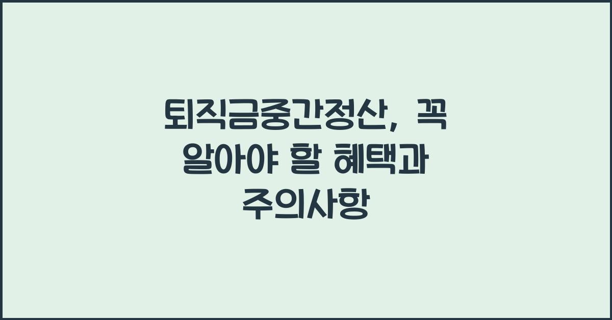 퇴직금중간정산의 개념 이해하기퇴직금중간정산은 퇴직금의 일부를 미리 지급받는 제도로, 특히 긴급한 상황이나 재정적 필요가 있을 때 고려해볼 수 있는 옵션입니다. 일반적으로 퇴직금은 퇴사 시 일시에 지급되지만, 중간 정산을 통해 필요할 때 미리 꺼내 쓸 수 있는 유용한 방법이기도 하지요. 경제적 여유가 없거나 예기치 못한 지출이 발생했을 때, 퇴직금중간정산은 현실적인 선택이 될 수 있습니다.퇴직금중간정산 더 알아보기많은 사람들이 퇴직금중간정산을 간과하는 경우가 많습니다. 아마 처음에는 퇴직금이 많이 쌓여 있겠지 하고 막연히 생각하게 되죠. 하지만 다들 알다시피, 예상치 못한 상황이 언제든 찾아올 수 있으므로 미리 대비하고, 필요할 때 적절히 사용할 수 있는 방법을 찾는 것이 중요합니다. 심적으로도 경제적 스..